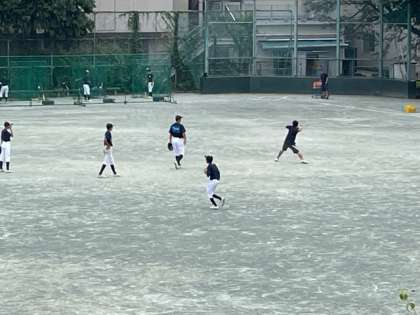 気がつくと少し秋らしい風が感じられる校庭では、野球部とサッカー部が活動中です。