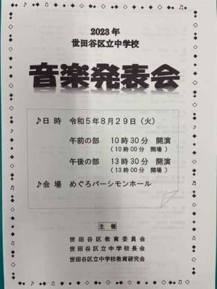 明日の世田谷区立中学校音楽発表会に向けて練習に励んでいます。