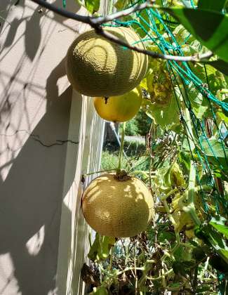 I組3年生が、技術(栽培)の授業で育てているメロンが暑さに負けず元気に育っています。近づくと良い香りがします。