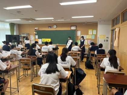生徒会役員選挙に向けて、選挙活動が本日から始まりました。朝の校門付近での辻立ち、クラスを回る遊説、そして給食時の政見放送です。立ち会い演説会と選挙は9/20になります。一階昇降口にはポスターも掲示されています。