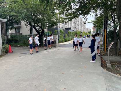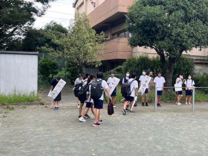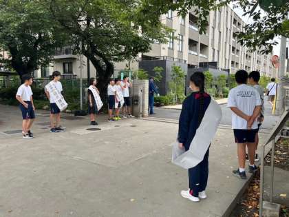 正門と南門で登校時に選挙活動を行っています。給食時には政見放送も行います。