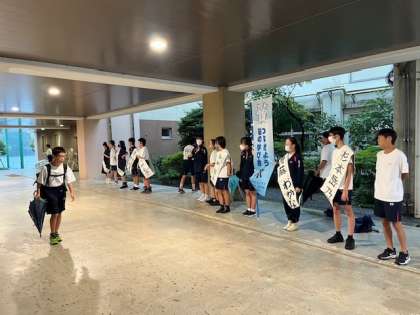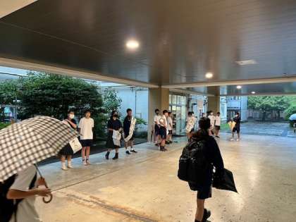 台風の朝でしたが、ピロティで選挙活動継続中です。