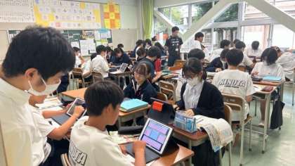 落ち着いて授業が進んでいます。デジタル、アナログ、よさを生かしています。