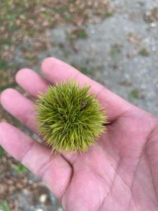集合した場所の足もとには栗がありました。