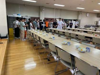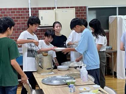 100名を超える配膳を食事係が行ってくれています。夕食はカレーライスです。