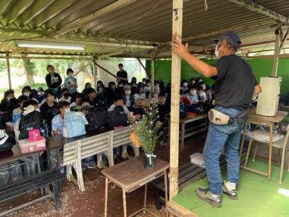 体験の前に小林さんから酪農についての歴史やホルスタイン・ジャージなどの牛について学んでいます。