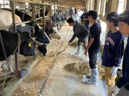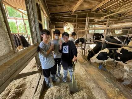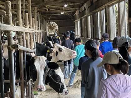 牛の大きさに少し緊張していましたが、餌をあげることで親近感が生まれてきています。