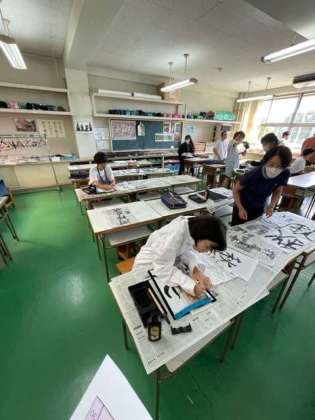 今日の書写のテーマは「秋」「白露」「虫の声」。人気は「秋」です。