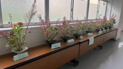 生け花が展示されています。それぞれ工夫がありますね。