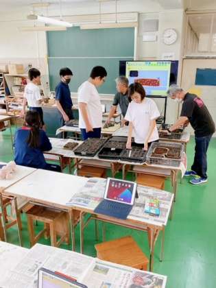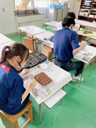 生物育成の授業では12月頃の開花を予定してポットに種まきをしています。観察記録は写真と作業の様子を描画してロイロノートで提出しています。