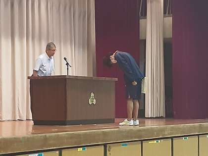 続いて、吹奏楽部東京都大会、水泳部世田谷大会、陸上部世田谷大会で優秀な成績を収めた生徒の表彰です。