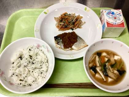 明日から中間テストが始まります。テスト前日の給食は、集中力アップ・脳の発達に役立つと言われる「DHA」が豊富なサバにしました!