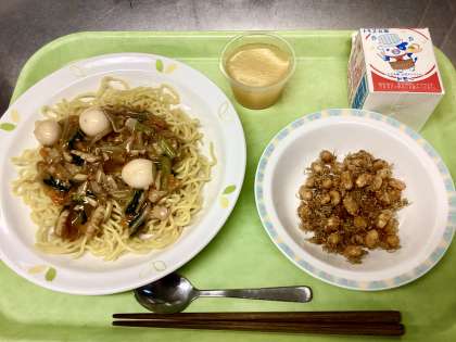 ・大豆とじゃこの甘唐揚げ  ・オレンジゼリー