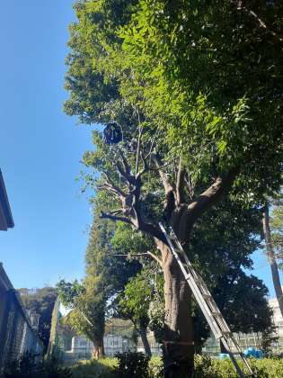 今日は古墳周辺の樹木の伐採をしてもらっています。高い枝を伐採してさっぱりとしました。