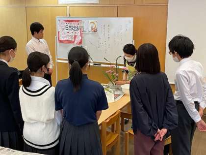 まずは先生から今日のポイントを教えていただき、その後各自で生けていきます。