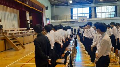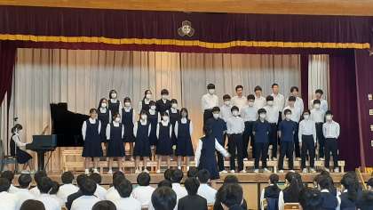 三年生の合唱コンクールリハーサルの様子です。学年の曲のあと、各クラスが舞台でリハーサルを行います。