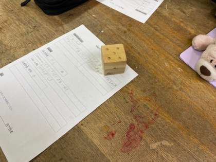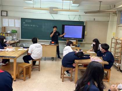 作成した木製サイコロの友達の作品を見て感想を共有する授業です。