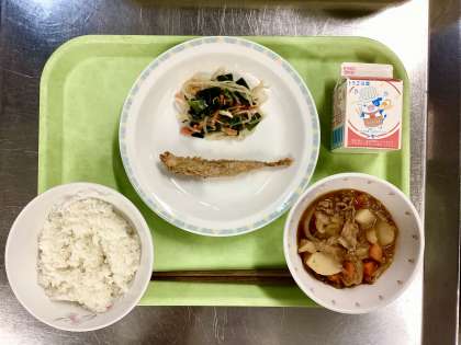 この日のししゃもの残菜率は3%。もうすっかりみんながししゃもに慣れてくれたようで何よりです。中は卵による「やわらかくて濃厚な味」、外は調理員さんの調理技術によるサクッとした揚がり具合!小魚が苦手な人でも食べやすいと思っています。ぜひ、苦手な人は半分、1/3でもいいので食べて、砧中にいる間にししゃもに慣れてほしいと思います。