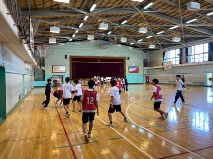 学芸発表会前ですが、生徒たちはしっかりと授業にも取り組んでいます。写真の奥の方にちらっと学芸発表会のスローガンが見えているような…