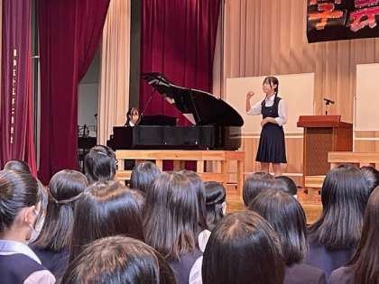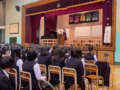 副委員長から開会の挨拶があり、校歌を全員で歌い、令和5年度学芸発表会が始まりました。