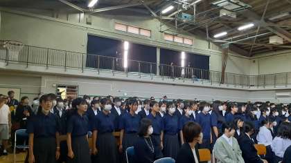 2年生の部が始まりました。始めに学年合唱曲「風は今」です。
