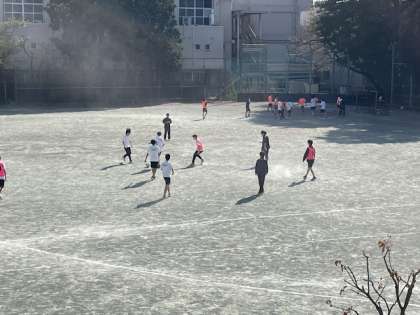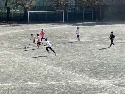 秋晴れの校庭では直前に迫る期末考査のプレッシャーを跳ね除けるように全力でボールを追いかけて、サッカーの授業に熱中しています。
