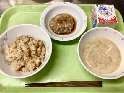 12月には、さつま芋をたくさん使う「キャンディポテト」を予定しているので、その頃には適度な固さで美味しいさつま芋を期待したいところです。それでも、今日の吹き寄せご飯も、調理員さんがなるべく小さく切ってくれて、丁寧に素揚げしてくれたおかげで、とても美味しくできました!