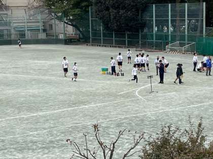 ここ数日の寒さにも負けず、校庭ではi組のみんながマラソン大会に向けて練習しています。