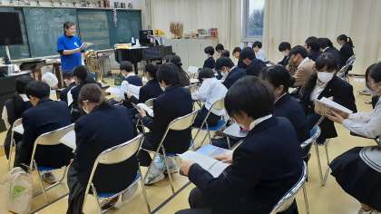 今日の音楽の授業は第一音楽室です。二年生の音楽では、イタリア語の歌詞で歌の練習をしています。