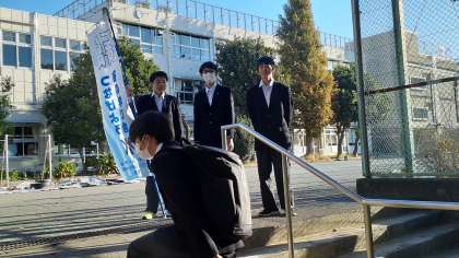 毎週金曜日は生徒会を中心に朝のあいさつ運動をしています。今朝の