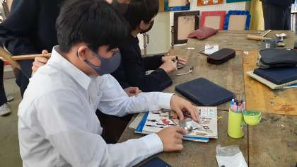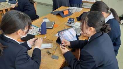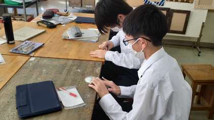 2年生の美術は、錫の作品の仕上げをしています。また、iPadを使ってポートフォリオを作成しています。
