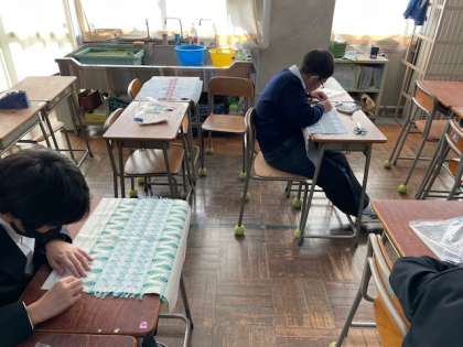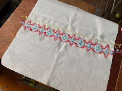 スェーデン刺繍の2枚目を制作中です。1枚目と違うデザインを考えながら刺繍しています。