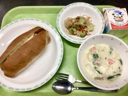 今日は給食後、すぐに下校で忙しい日なので、食べやすいようにこの組み合わせにしました。お休みもだんだんと落ち着いてきて良かったです。今日もしっかり食べて、病気に負けない体を作りましょう!