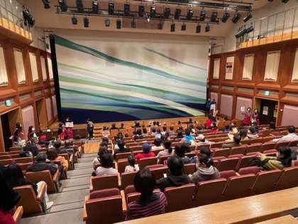オープニングの出演となる砧中吹奏楽部、まもなく演奏が始まります。