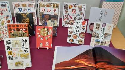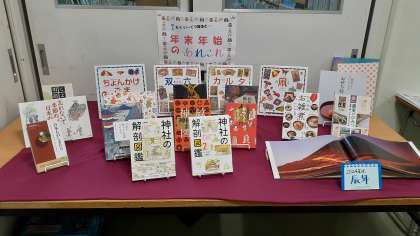 図書室前のスペースで、「年末年始のあれこれ」という題で、日本のお正月に関係する文化などを紹介する書籍を展示しています。こちらも貸し出ししていますので是非ご覧ください。