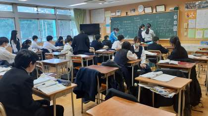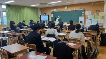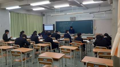 3年生の数学は2クラスを3つに分けた少人数授業です。各クラスと数学学習室で授業しています。「相似な図形」の単元を学習しています。