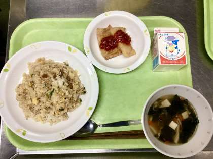 残念ながら、この日は栄養士である私は出勤できなかったため、味を見ることも食べることもできませんでした。しかし、残菜はどれも少ない!チャーハンとスープは5%しか残らず、いかチリソースに至っては5個だけ!1人2個付けなので1380個の「いかの切り身」を使ったのですが、たったそれだけしか残りませんでした!さらに、業者さんから予備として多めに入れてもらったので、よく食べるクラスを中心に、おまけを合計20個ほど入れました。そのため、計算上では残菜率は0%になります。