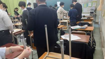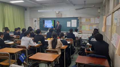 続いて、園芸高校の青木先生による「果樹と造園」の授業では、椅子の脚をロープで実際に結んだりしています。第一商業の平野先生の「東京のビジネス」の講義をしていただいています。