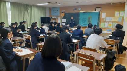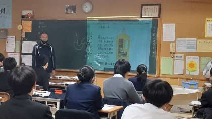 3年生の理科は、「酸・アルカリ」の単元を学習しています。プロジェクターを使って授業しています。