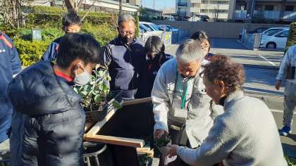 パンジーの苗はすでに咲いていて、色が分かるものもありますが、まだ咲いていていない苗も多く、どんな花が咲くか楽しみにしてください。