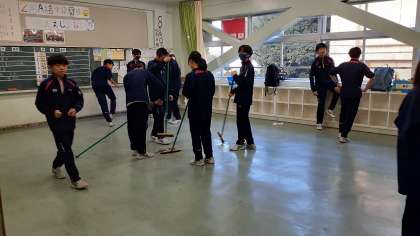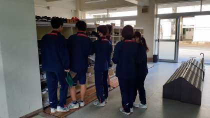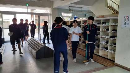 下駄箱や玄関周りも清掃しています。2年生の様子です。