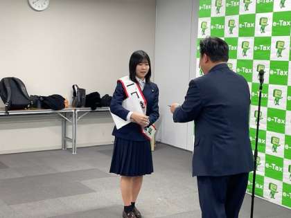 受賞記念及び納税道義のPRをするために本日、「世田谷税務署一日税務署長」を務めました。