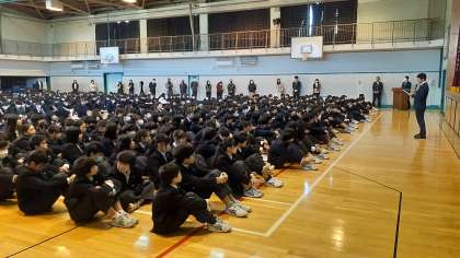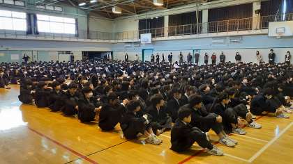 校歌斉唱のあとは、教務の先生、生活指導の先生よりお話がありました。冬休みの過ごし方、SNSについての注意事項などがありました。