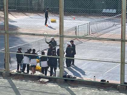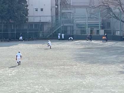 校庭ではテニス部と野球部が冬の日差しを浴びながら活動しています。