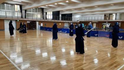 砧中学校では体育館と格技室でバスケ部・剣道部・卓球部が練習をしていました。