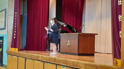今日より三学期が始まります。始業式の様子です。校長先生よりお話があり、校歌を生徒の指揮伴奏で斉唱しました。