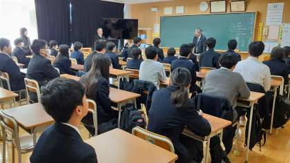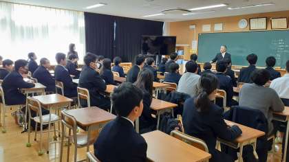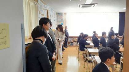 表彰のあとは、各クラスで学活です。I組は1〜3年全員で集まっています。今日より、育児休暇でお休みされていた、チョン先生が復帰されます。校長先生のご挨拶もありました。