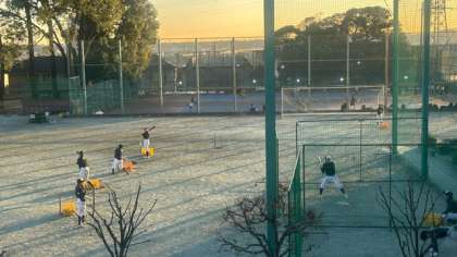 野球部のティーバッティング、テニス部もしっかり練習していますね。