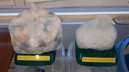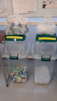 職員室前の廊下に生徒会が主催しているペットボトルのキャップと使い捨てコンタクトレンズケースを回収する入れ物があります。みなさんもおうちで集めて持って来てください。SDGsに少しずつでも貢献しましょう。