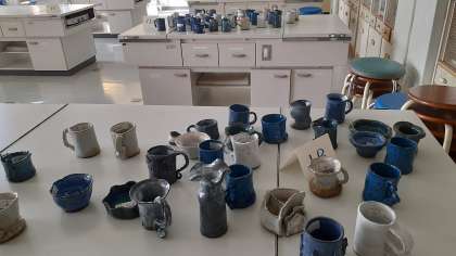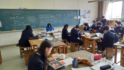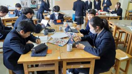 1年生の美術では、焼き上がった陶芸作品の最終ポートフォリオを作成しています。iPadで写真を撮影して、作品に対する思いなど説明をつけていきます。